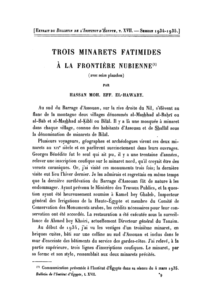 Trois minarets Fatimieds â la frontiére Nubienne