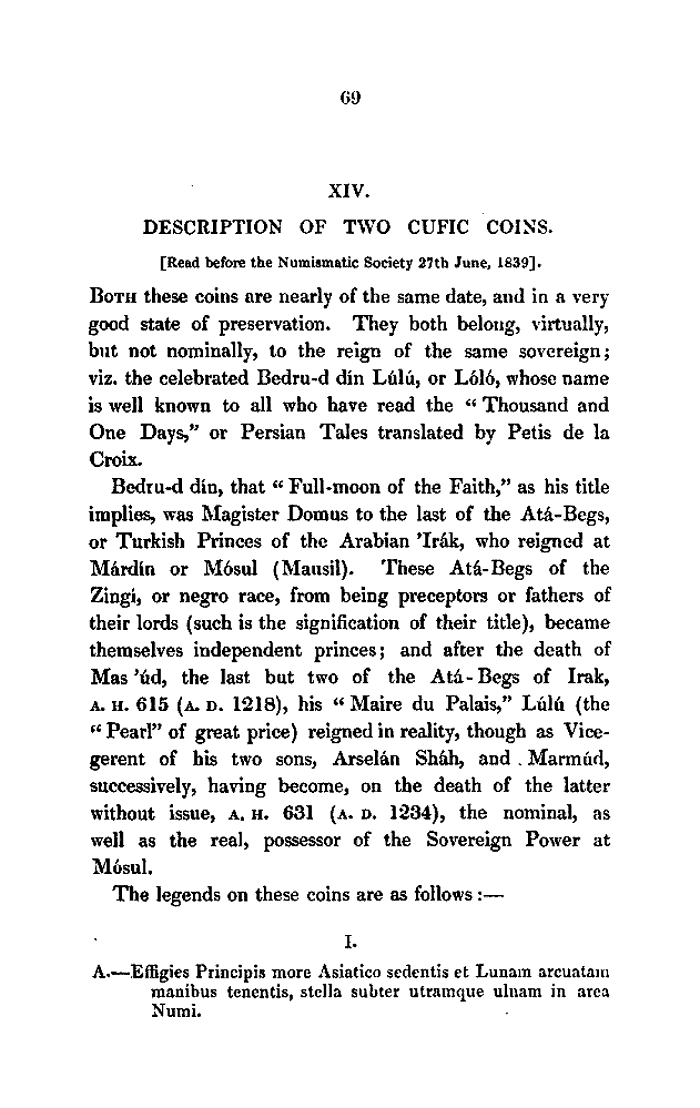 Description of Two Cufic Coins