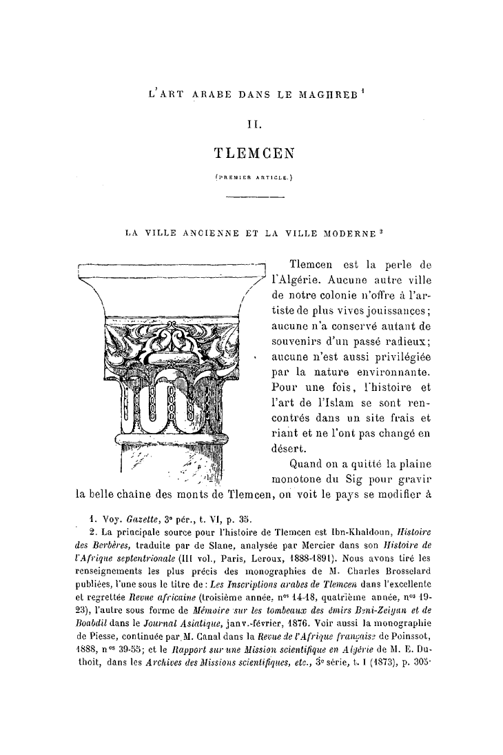 L'art arabe dans Le Maghreb : Tlemcen – First Article
