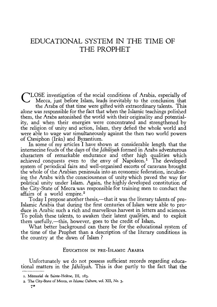 Educational System in the Time of the Prophet