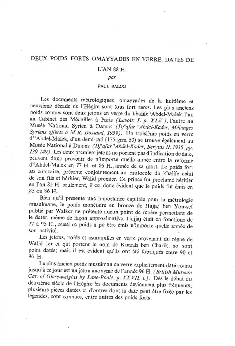 Deux Poids Forts Omayyades en verre, datés de l'an 88