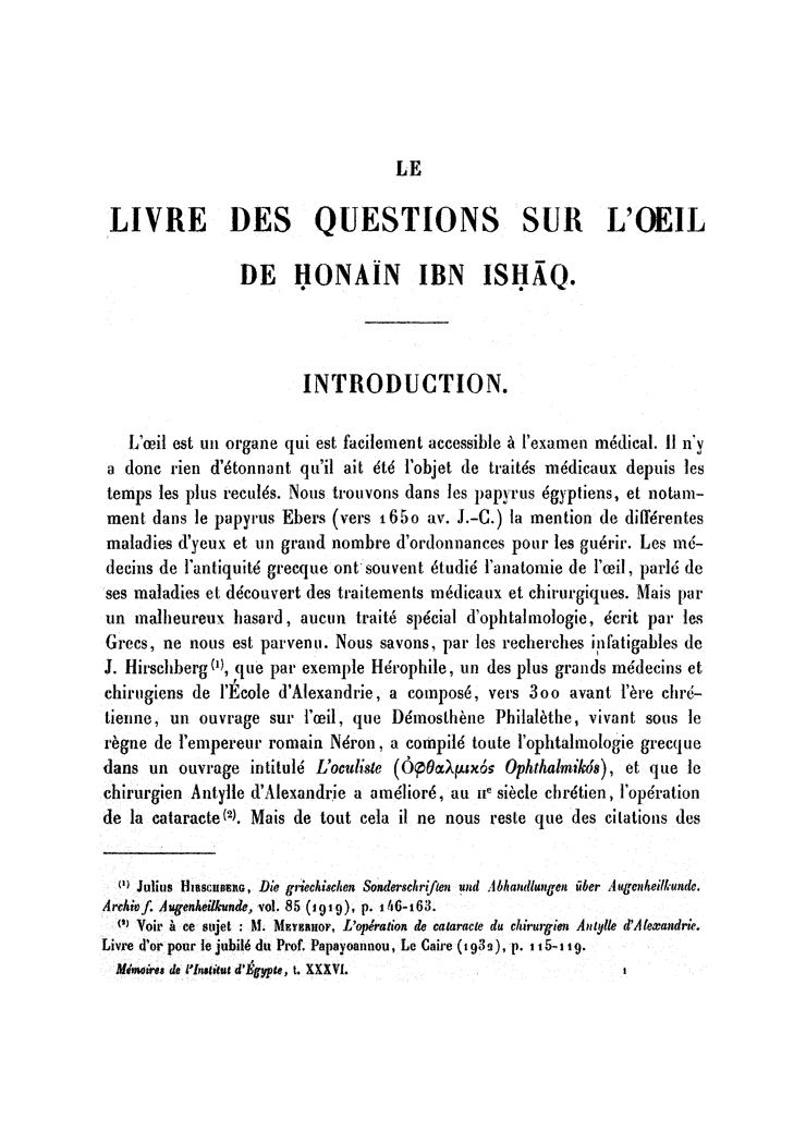 Le Livre des Questions sur l'Oeil de Honain Ibn Ishaq