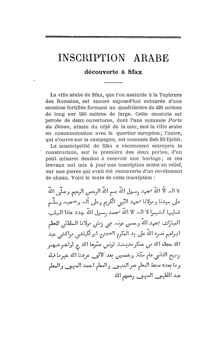 Inscription arabe decouverte a Sfax