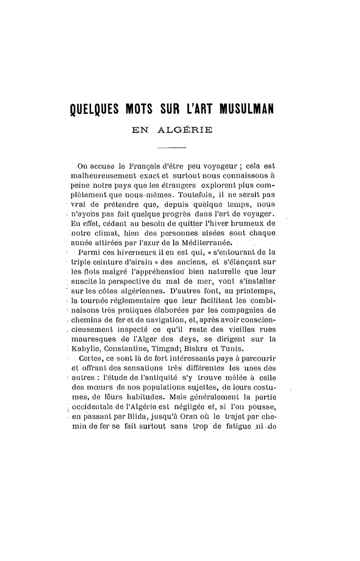 Quelques mots sur l'art musulman en Algérie