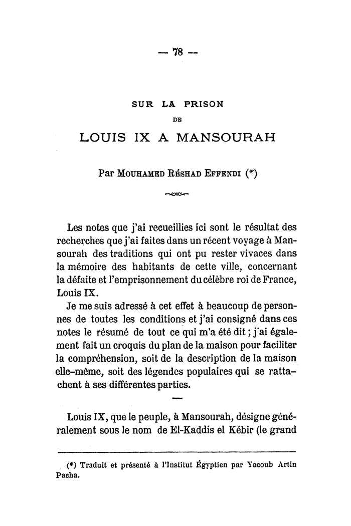 Sur la prison de Louis IX à Mansourah