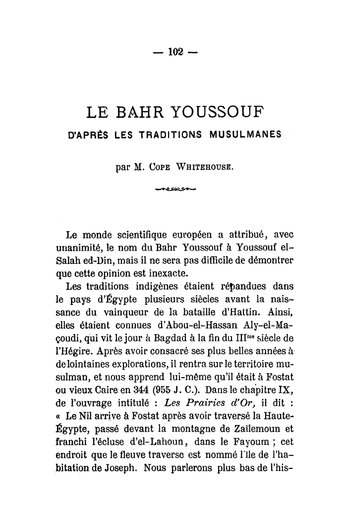 Le Bahr Youssouf : d'après les traditions musulmanes
