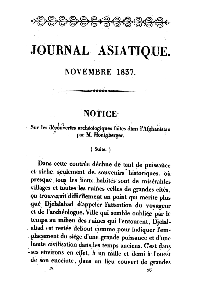 Notice sur les découvertes archéologiques faites dans l'Afghanistan par M. le Dr Honigberger (suite)