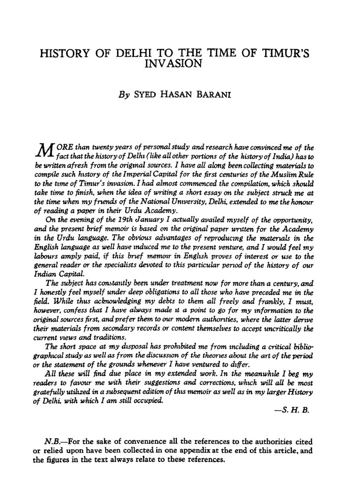 History Of Delhi To The Time Of Timur's Invasion