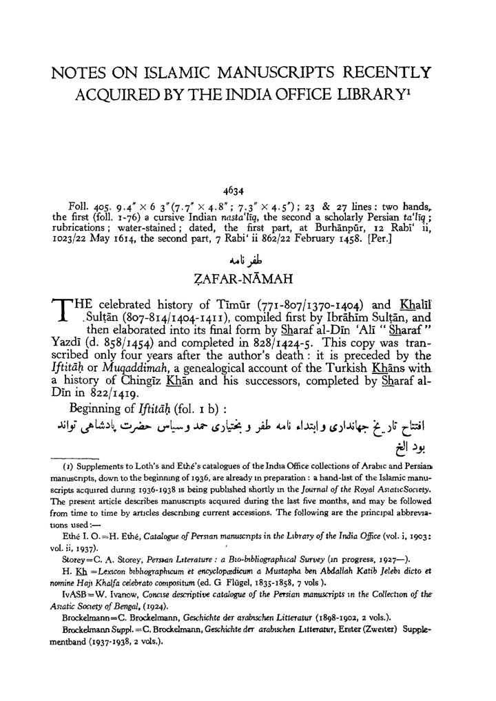 Notes On Islamic Manuscripts Recently Acquired By The India Office Library