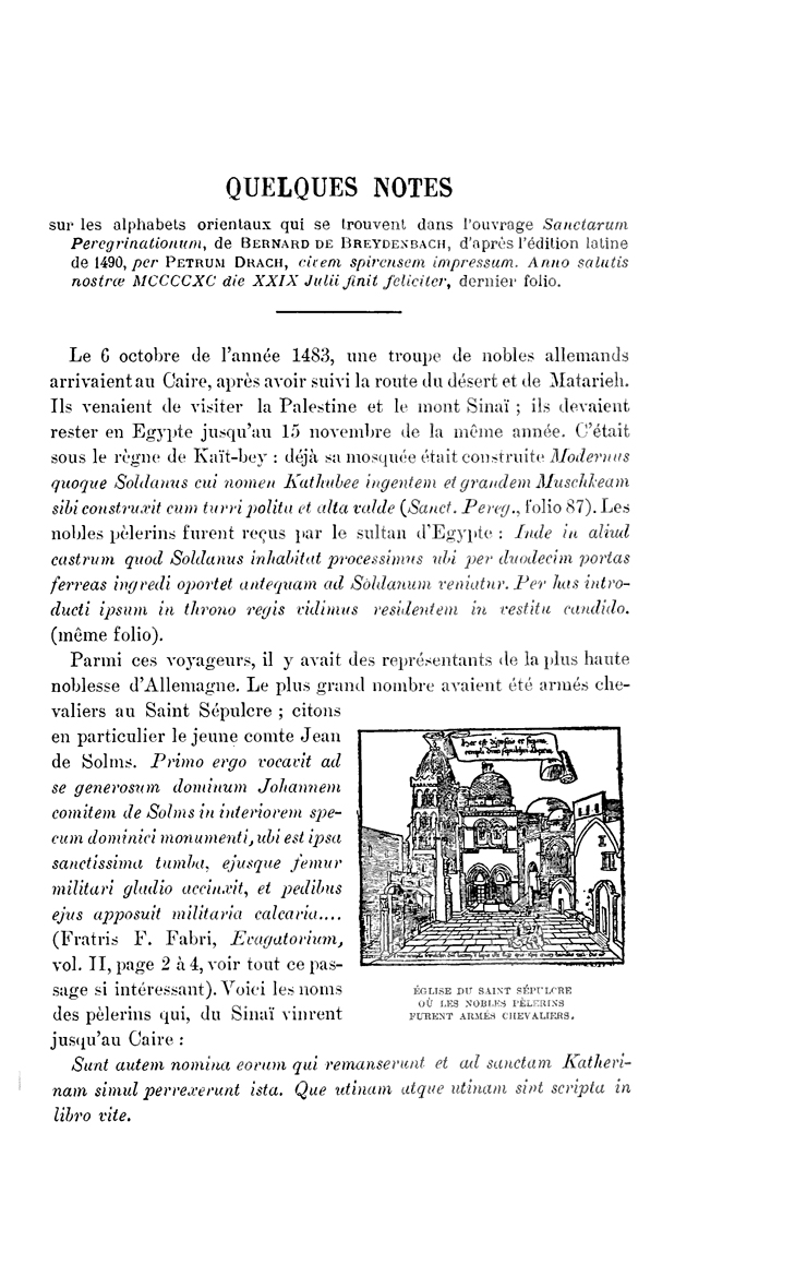 Quelques notes sur les alphabets orientaux qui se trouvent dans l'ouvrage Sanctarum Peregrinationum de Bemard de Breydenbach