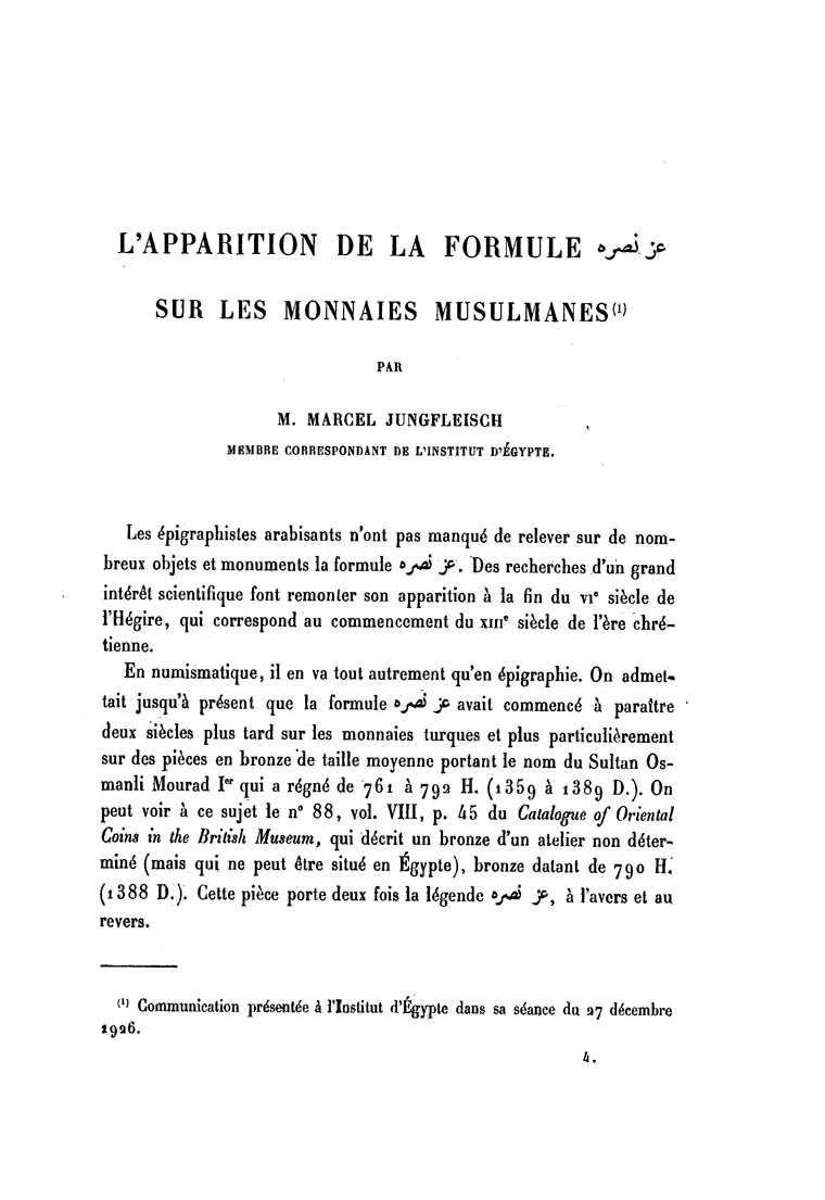 L'Apparition de la formule عز نصره sur les monnaies musulmanes