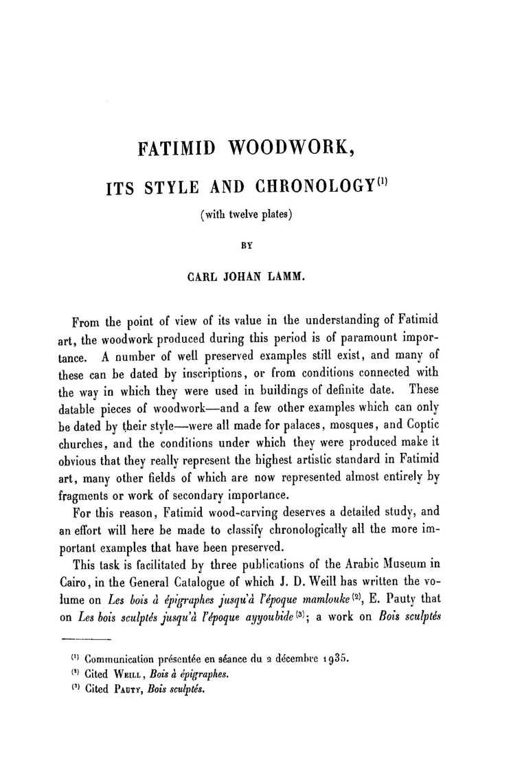 Fatimid woodwork, its style and chronology