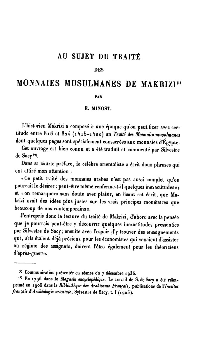 Au sujet du Traité des monnaies musulmanes de Maqrizi