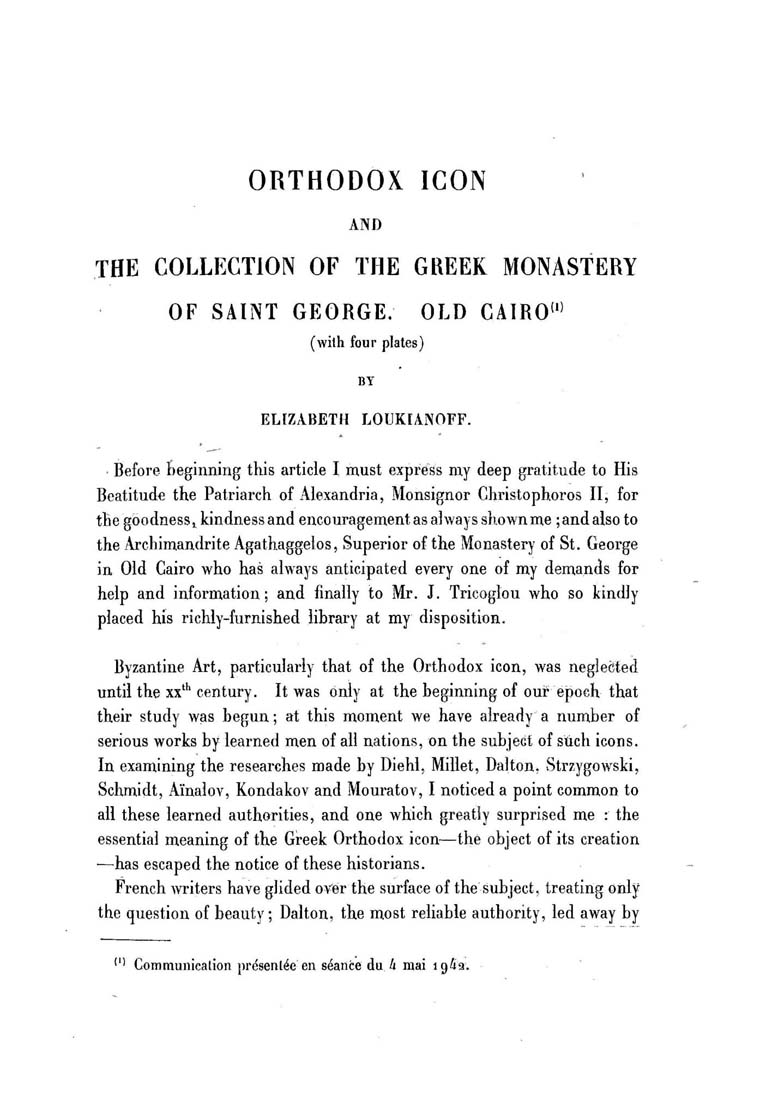 Orthodox icon and the collection of the Greek Monastery of Saint George in Old Cairo