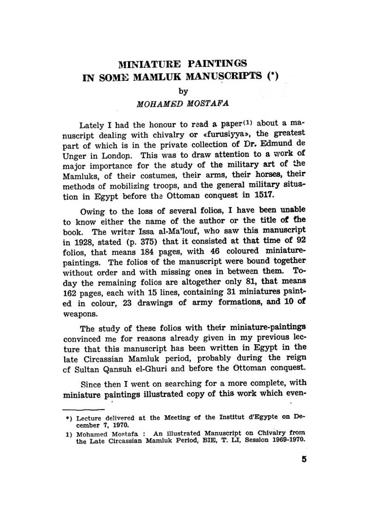 Miniature Paintings in some Mamluk Manuscripts