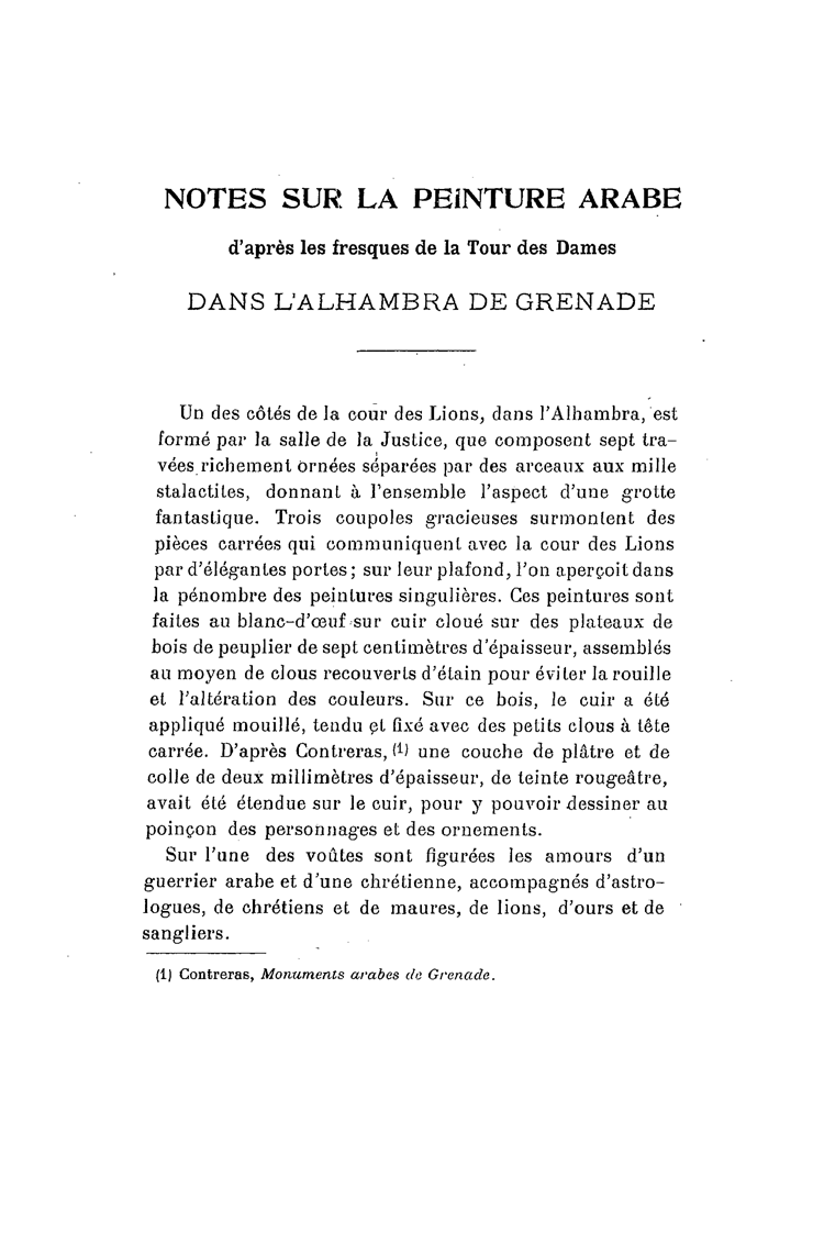 Notes sur la peinture arabe d'après les fresques de la Tour des Dames dans l'Alhambra de Grenade