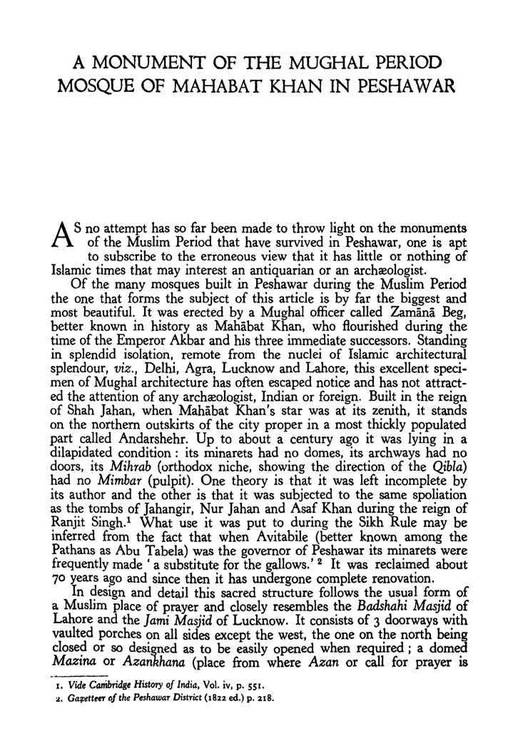 A Monument Of The Mughal Period Mosque Of Mahabat In Peshawar