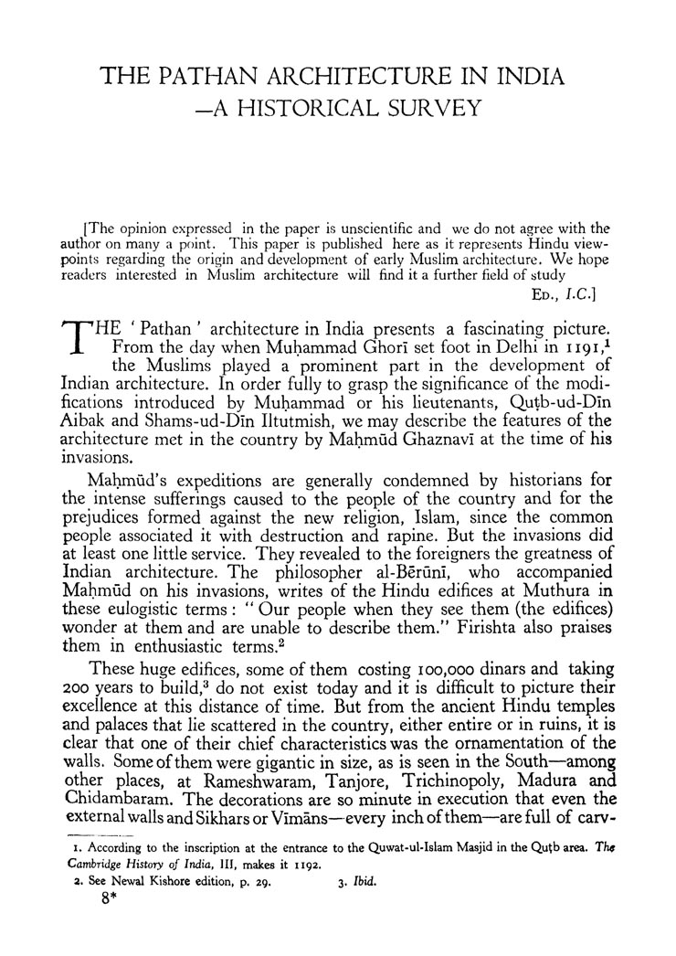 The Pathan Architecture in India-a Historical Survey