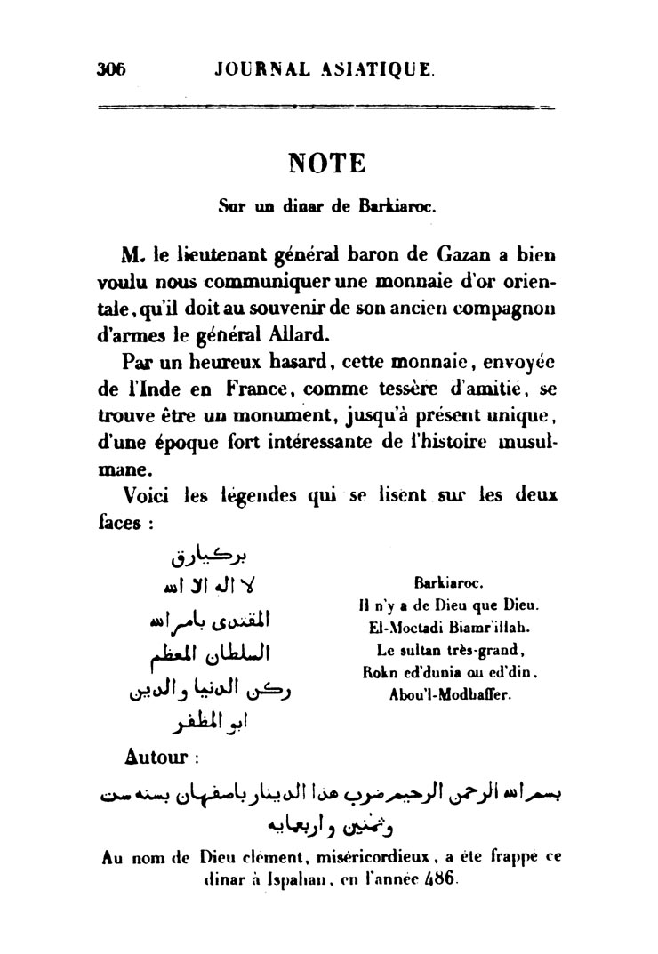 Note sur un dinar de Barkiaroc