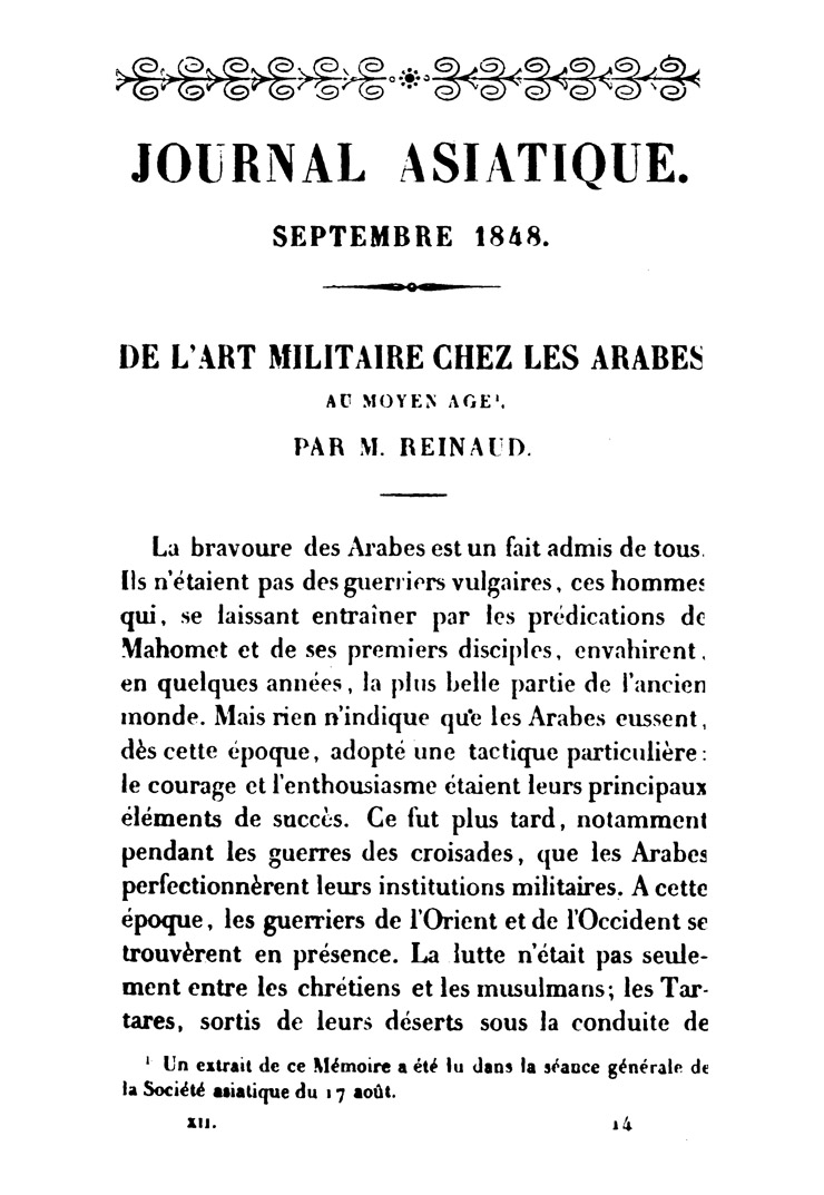 De l'art militaire chez les Arabes au moyen-âge
