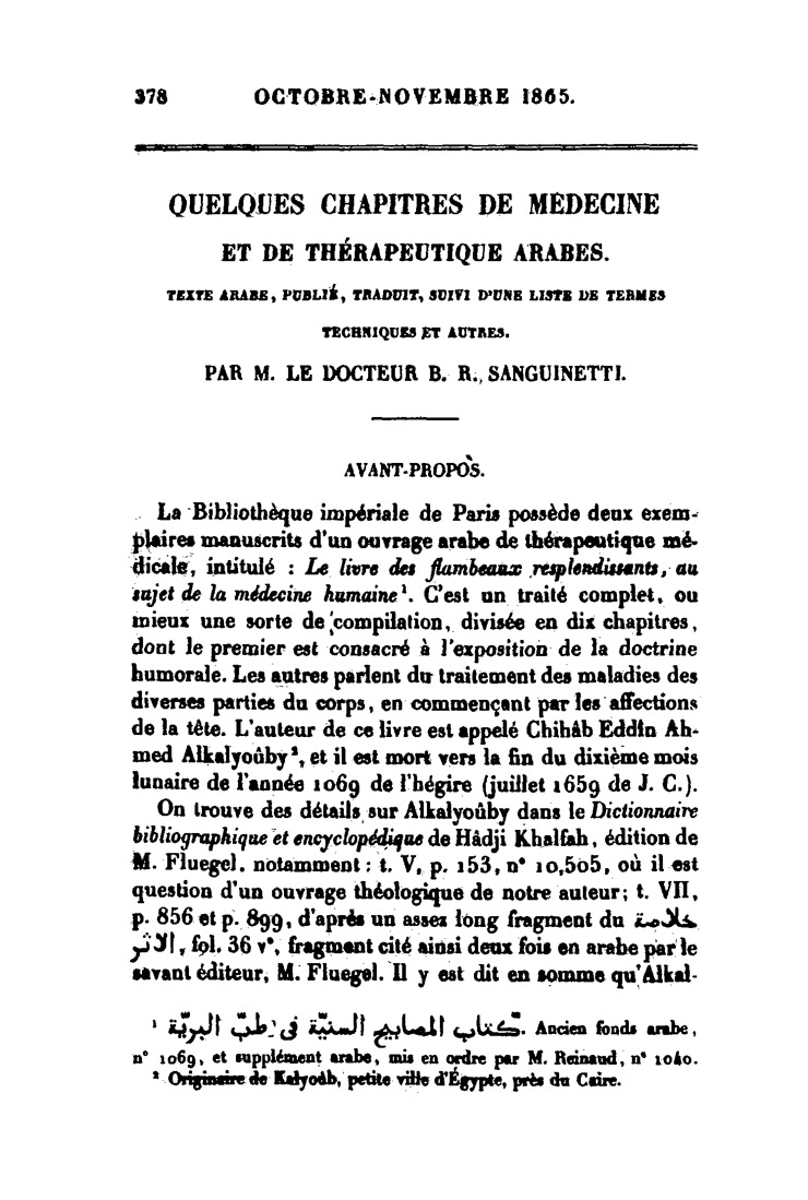 Quelques chapitres de médecine et de thérapeutique arabes